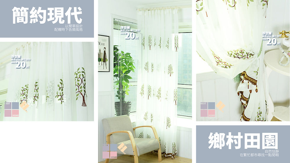 纖維混紡 浮空樹 繡花窗紗