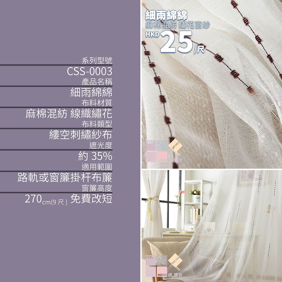 麻棉混紡 細雨綿綿 繡花窗紗