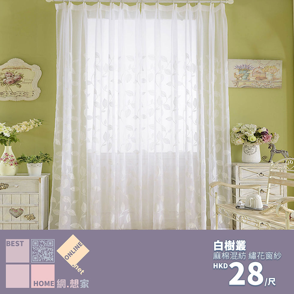 麻棉混紡 白樹叢 繡花窗紗